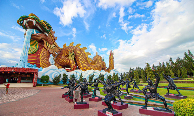 The Heaven Dragon Park, also known as the Descendants of the Dragon Museum, was built according to the wishes of Mr. Banharn Silpa-archa while he was Prime Minister. The museum was designed and built within the area of the City Pillar Shrine of Suphan Buri, on the west side of the Suphan Buri River, along Malaiman Road, Ruay Yai Subdistrict, Mueang Suphan Buri District. It was established to present the history and culture of the Chinese people in Thailand, as well as the history and culture of China, as a memorial to the 20th anniversary of Thai-Chinese diplomatic relations in 1996.