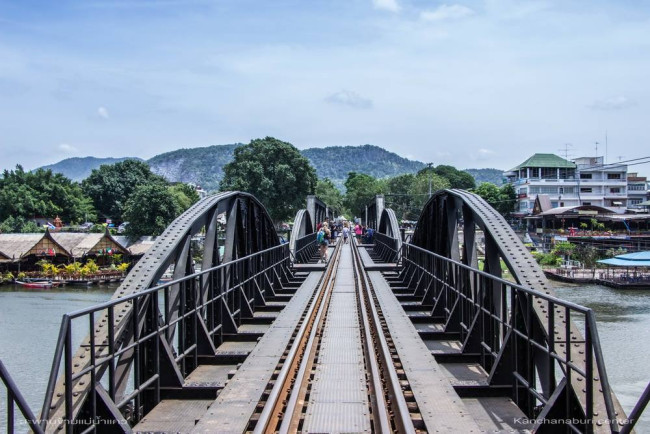 River Kwai Bridge is a steel bridge with semi-circular truss structure and reinforced concrete piers, located in Tha Makham Subdistrict, Mueang District, Kanchanaburi Province, approximately 4 km north of the city center, and 400 meters to the left. It is currently used as a railway crossing on the Thonburi-Nam Tok line.